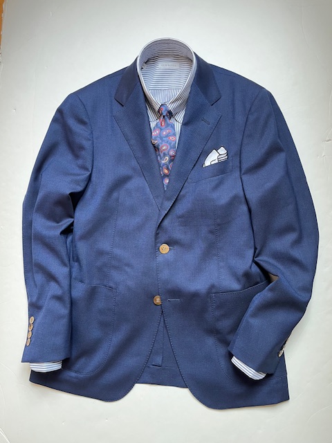 ライトウエイトなウール生地は盛夏でも重宝します。