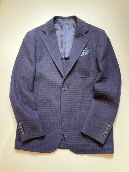 特に、ネイビーの単色ジャケットに凝った織り柄を施し、