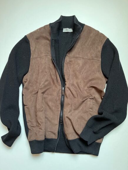 前身頃は一見スエード?と思わせて、じつはフェイクレザー仕様