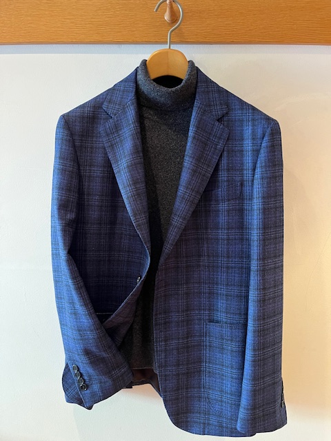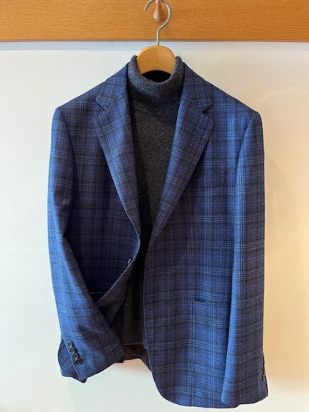 場面に合わせたリラックス感を表現したネイビージャケット姿で