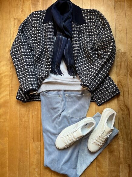 時にジャケットのように、時にアウターとして使えるローゲージニットは