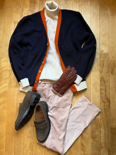 ニットカーデ×タートルネックを組み合わせたほっこり暖かみあるコーディネイト