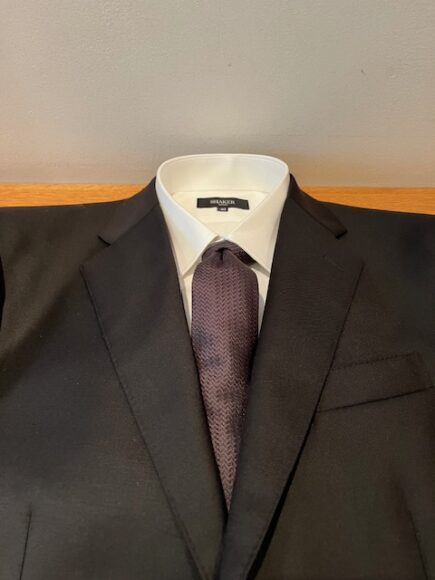 チーフのあるなしでVゾーンの印象はガラリと変わります。