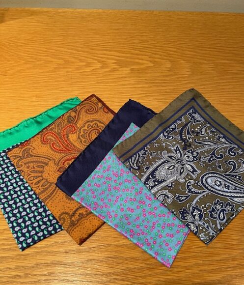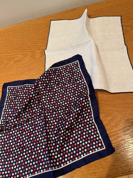 白無地チーフの延長として使えるので取り入れやすく色柄が見える