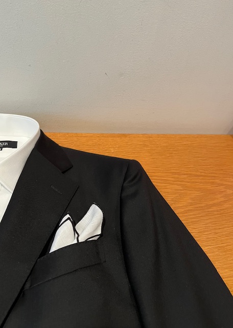 胸元のわずかな面積ではあるがチーフを挿すだけでメリハリが増し