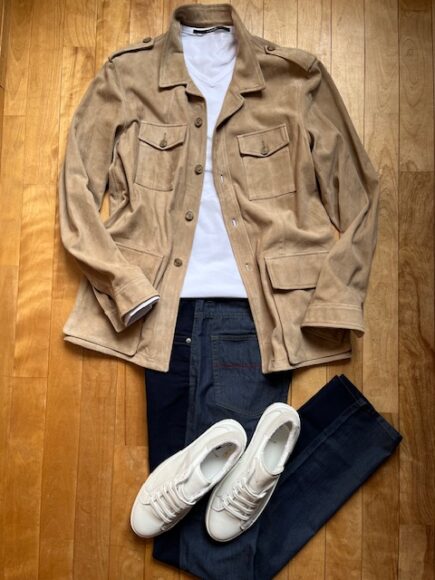 アクティブ感のあるデザインはアメカジの定番コーデでもあるスエード×デニムも