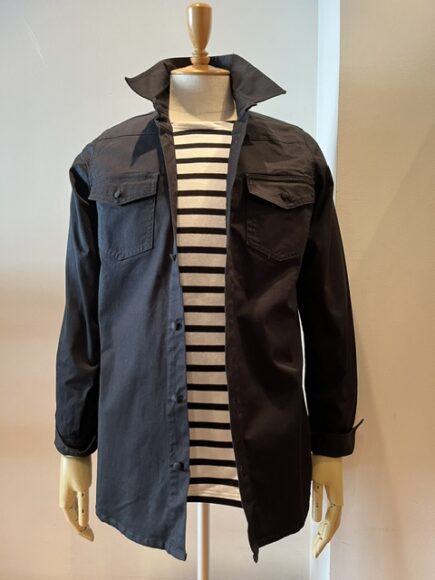 ミリタリーシャツをボーダーTシャツと白パン合わせて品良く